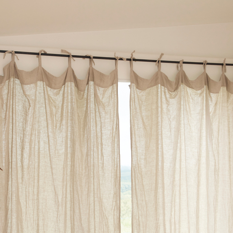 Doğal sürdürülebilir yıpranmış ve yıkanmış fransız keten perde oturma odası için